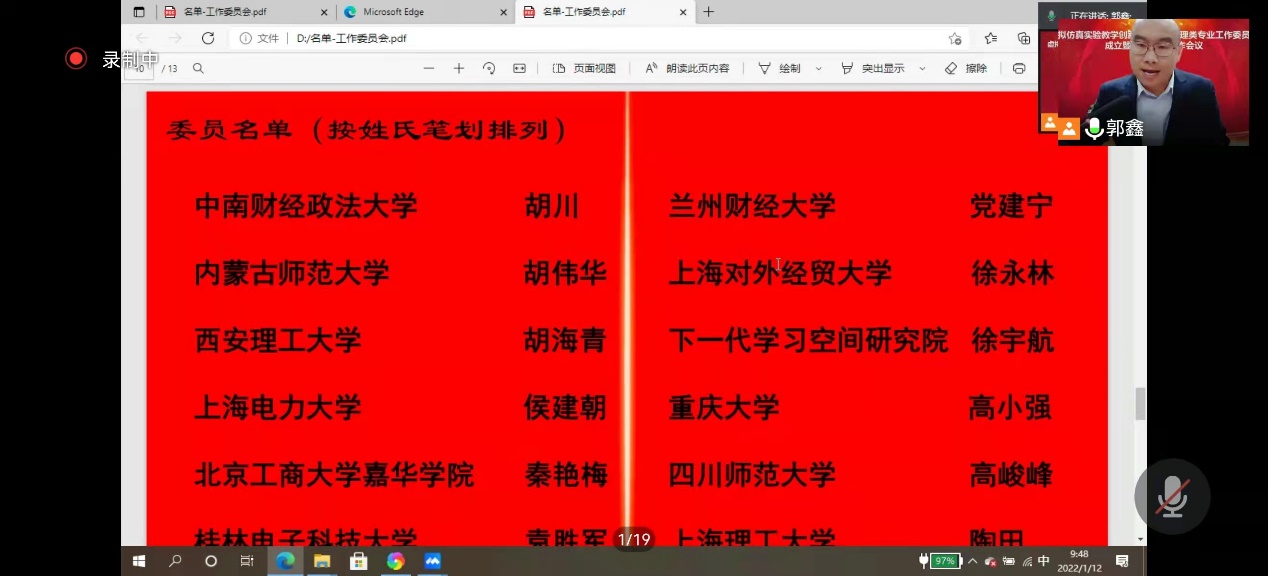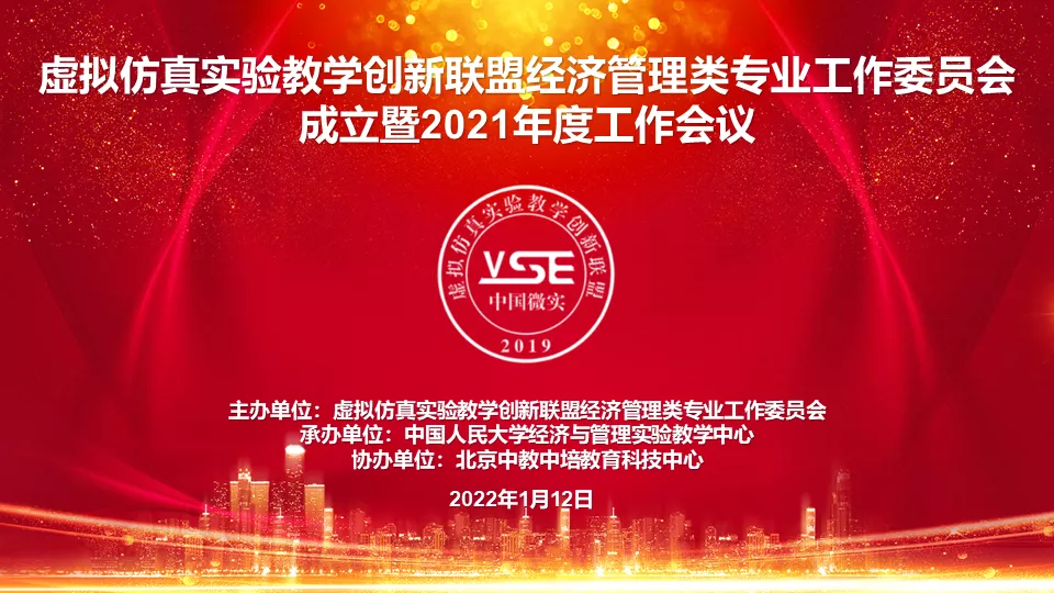 2022年1月12日,虚拟仿真实验教学创新联盟经济管理类专业工作委员会成立暨第一次工作会议以线上线下结合的方式成功召开。本次会议由联盟经济管理类专业工作委员会主办,中国人民大学经济与管理实验教学中心承办,中国人民大学党委常委、副董事长胡百精向会议致辞,150所高校和相关研究机构、企业的近 220人线上线下参会。公司是第一届经济管理类专业工作委员会的正式会员单位,bevictor伟德副经理胡伟华教授作为第一届经济管理类专业工作委员会的委员参加了会议。