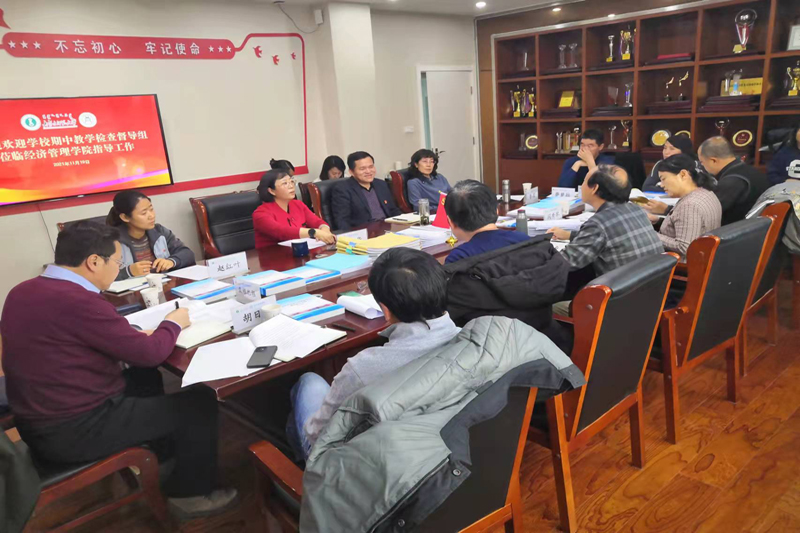 期中教学检查是保障教学工作持续改进、提升教学质量的重要手段。按照《关于开展 2021—2022 学年第一学期期中教学检查的通知》(内师教发〔2021〕64号)要求,公司高度重视,结合工作实际,认真进行了教学自查。根据公司工作安排,11月19日下午由甘月文、田阳荣、萨楚尔夫、闫秀琴、孟根巴根组成的公司教学督导组、萨楚拉、胡日查、王铁娟等教学经理和教务处赵红叶老师一行9人莅临公司开展期中教学检查工作。公司党委书记智如水、教学副经理胡伟华、公司督导组成员曹霞教授、各系系主任及本科教学秘书参加了本次检查工作。