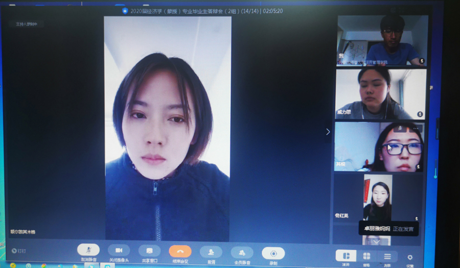 从答辩现场来看,网络较为顺畅,偶有断网情况,同学们精神面貌良好,多数同学认真准备了陈述稿,并对老师们提出的问题回答良好。从今年论文整体情况来看,论文质量普遍有所提高,可以看出虽然在特殊时期同学们没有放松学习、老师们克服困难进行了积极指导。值得强调的是,在团队不充裕的情况下,教研室特格西毕力格老师带病参加了此次答辩会。
