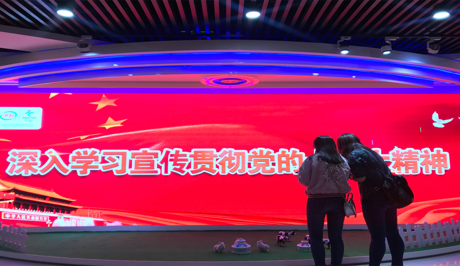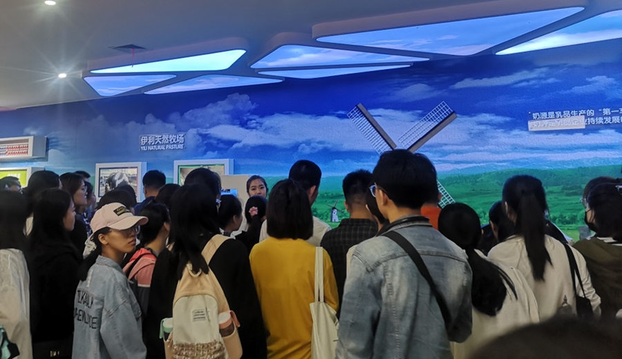 同学们认真倾听讲解员对伊利天然牧场的介绍