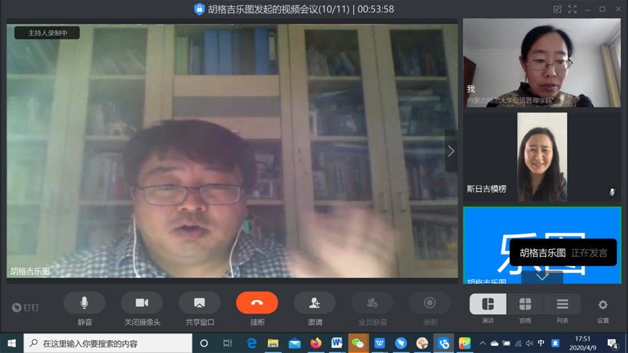2020年4月9日下午4点,经济系召开了视频会。会议由经济系副主任胡格吉乐图主持,经济系全体老师参加。会议围绕内师教发[2020]20号文件—关于2020版本科生培养方案课程教学大纲编制(修订)工作的通知,展开了学习和讨论。重点是确认本次教学大纲修订与以往有大幅度的变化。并针对如何去编写,注意哪些事项,可能遇到哪些困难,如何去解决等问题展开了热烈的讨论。其中,经济系系主任杨蕴丽教授针对一些新的提法,如增加课程内容的“高阶性”、“创新性”、“挑战度”等问题做了详细的解读。会议也达成一些共识,如从效率层面考虑,由一位有经验的老师先做出模板让其他老师来参考。还有大家边写边解决问题,即在实际编写过程中发现问题、解决问题,随时在微信群里讨论等。一些老师也提出了一些困惑:其中刘涛老师提出如何获取至少3所“双一流”院校同类优质课程的大纲;包秀琴老师提出如何选择教材的问题。经济法的马工程的教材叫《经济法学》,适合于法学专业的员工学习,而不适合于经管类的员工学习,这直接关系到教学大纲的编写工作。这些问题还有待于公司层面探讨和解决。