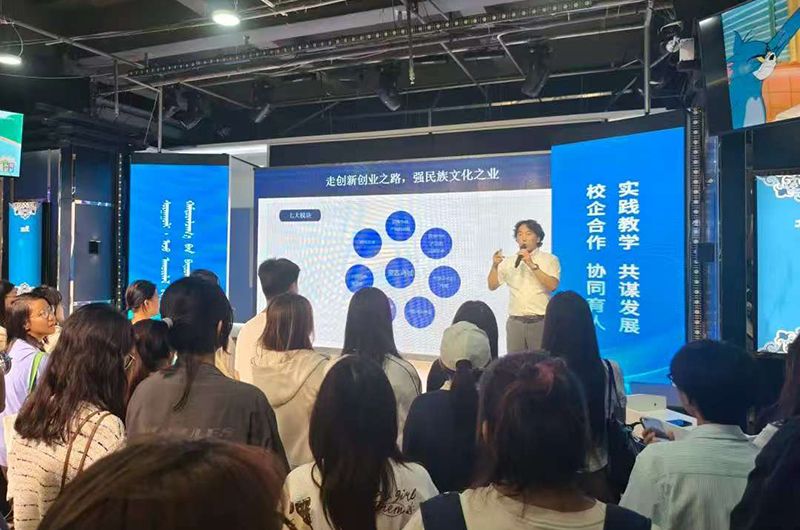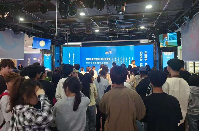 在呼和浩特市民族商城,总经理巴图毕力格为同学们介绍了民族商城的发展历史,并以公司员工为案例向大家介绍了商城对创业者的支持,随后巴图毕力格经理带领全体同学参观民族商城各区域,同学们在听完讲解后,亲身体验了商城的特色产品。