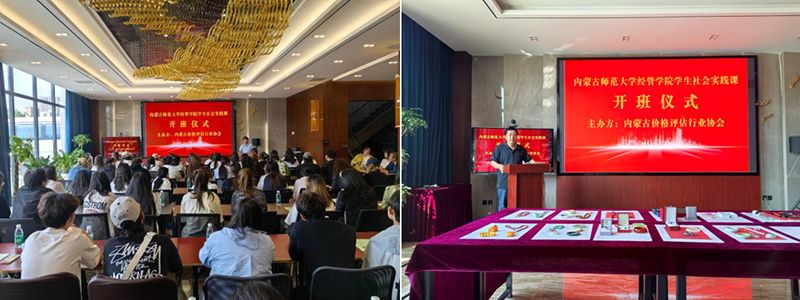 开班仪式上,教育实习中心主任胡格吉乐图、经济系主任丁继,表达了对价格评估协会的谢意,希望同学们珍惜机会,以严谨的态度投入实践,既要虚心向协会专家学习,理解价格评估的逻辑,也要走进实践一线,在调研中发现问题、分析问题。
