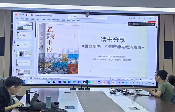 此次读书分享会由22级研究生人口资源与环境经济学的格根其尔同学主持,首先分享的是21级人口资源与环境经济学研究生任和同学,分享的是《人口创新力——大国崛起的机会与陷阱》,作者是梁健章,从创新的三个人口因素、主要国家人口与创新力竞争分析、增强创新能力的人口方向政策选择和人口创新力指标体系构建等四个方面,论证了国家的经济发展程度取决于创新能力,而创新能力从根本上取决于人口,包括人口规模、地理聚集程度和人口年龄结构。如果中国能维持世界20%的人口,在市场规模和人才数量上保持绝对优势,在强大经济实力的支撑下,中国的科学技术仍会快速进步,从而进一步巩固中国的经济地位。