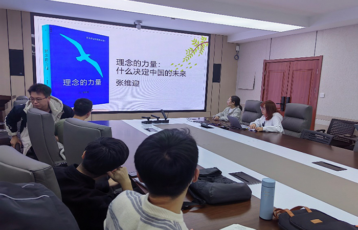 第三个分享的同学是22级西方经济学研究生王睿娟,分享的书目是《理念的力量:什么决定中国未来》。本书涵盖了著名经济学家张维迎近年来涉及市场、法治、改革、未来发展等重要领域的二十四个理念。作者用简单形象的类比说明解释了经济现象,是中国改革最前沿的一流经济学家为普通读者撰写的经济学读物,为理解经济观念、中国经济和世界格局提供了一个解释的视角。