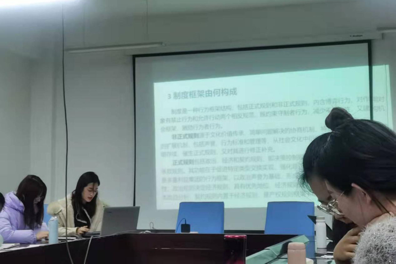 第五位分享的同学是2020级西方经济学专业的戴玮,她给大家分享的书籍是道格拉斯·诺思所写的《制度、制度变迁与经济绩效》,分享理由是制度为分析经济行为提供新视角,为提高经济绩效指出新思路。基于横向和纵向角度,对制度分析进行了框架的构建,聚焦于如何使制度发挥更好的作用。