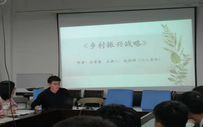 第三个分享的同学是21级人口、资源与环境经济学研究生赵洪坤,分享的书目是《乡村振兴战略》。本书立足浙江、放眼全国,在全面总结提炼浙江“三农”发展实践和经验的基础上,深入探究乡村振兴规律,系统提出乡村振兴路径,提出了新时代乡村振兴的思路、举措、方案和案例,为全国实施乡村振兴战略提供可借鉴可参考可推广的样本示范。