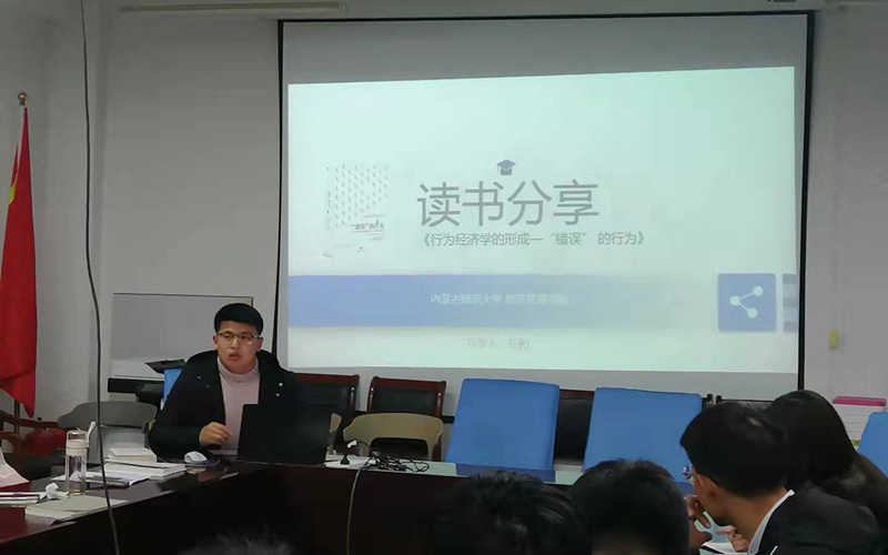 第四个分享的同学是21级人口、资源与环境经济学研究生任和,该同学分享的书目是《错误的行为》,本书说明了要去预测个人的行为,弄清楚家庭的消费行为,我们显然需要研究普通人。他们有激情,欠缺长远眼光,对待不同类型财富的态度也不同。我们需要以这些人为经济主体建立模型,进而去研究他们的行为与经济的关系。