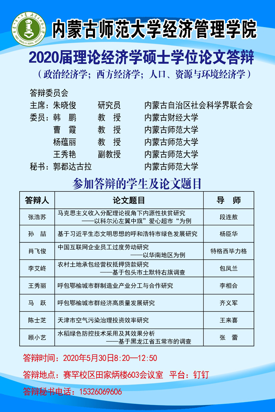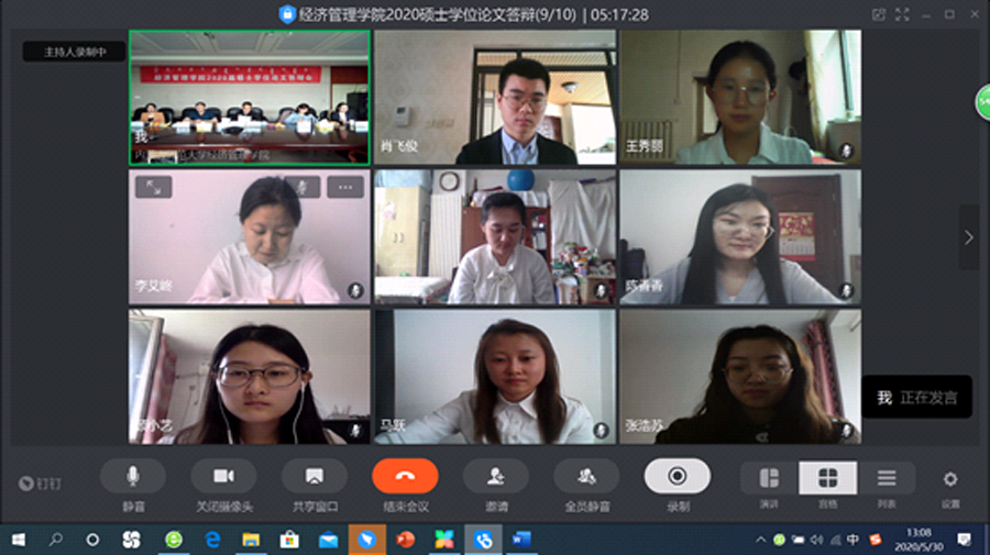 5月30日, bevictor伟德2020届硕士研究生毕业论文“云答辩”顺利完成。遵循公司“模式创新,流程不变,标准不降,质量不减”原则, 本次答辩充分利用信息化手段,创新工作模式,优化实施方案,采取“云端答辩”的形式,分为理论经济学、区域经济学、职工三个小组在线上开展完成。
