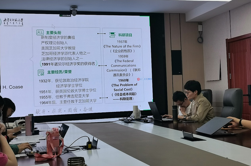 此次读书分享会由22级研究生人口、资源与环境经济学的唐振超同学主持,首先分享的是22级政治经济学研究生周宽同学,分享的是《变革中国》,作者是罗纳德·哈里·科斯和王宁。该篇主要讲述了一个有着中国特色的独特故事。