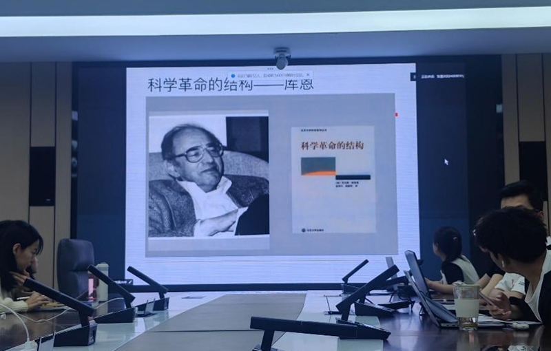 接着,张慧同学为同学们分享了托马斯·塞缪尔·库恩的《科学革命的结构》, 经过十五年的潜心研究,这么一本小部头的学术专著却成就了一部划时代的名篇。该书以范式概念为中心,系统论述了科学知识增长的模式,形成一阵库恩“冲击波”,成为科学哲学的转折点,在科学哲学史开辟了一个既不同于逻辑实证主义,又不同于否证主义的“历史学派”时期。