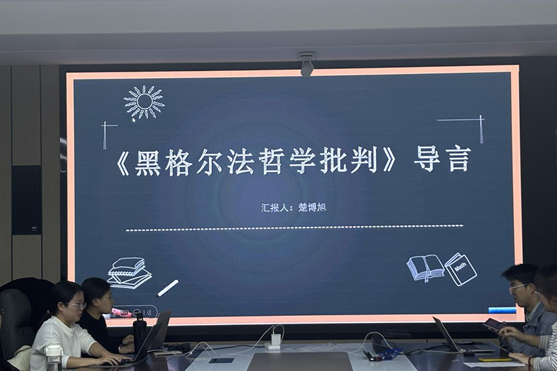 第三位分享的同学是23级政治经济学专业研究生楚博旭同学,分享的书目是《黑格尔法哲学批判》导言部分,该书的作者是卡尔·马克思。这部作品标志着马克思从唯心主义向唯物主义、从革命民主主义向共产主义的转变,是马克思主义发展史上的一个重要里程碑。本书中马克思对黑格尔法哲学进行了深入的批判,指出黑格尔将法律视为绝对观念的展现,忽略了法律的社会性和阶级性,揭示了资产阶级“政治解放”的局限性,提出了“人的解放”的社会目标。马克思认为,法律的产生与社会和生产力的发展有着密切的关系,是一个有特定历史条件的社会现象。这本书为马克思主义的形成和发展奠定了重要基础。这部作品不仅在理论上具有重要意义,还在实践上为无产阶级革命提供了理论指导。通过阅读这部作品,我们可以更加深入地理解马克思主义的理论体系,认识到马克思思想的深刻性和前瞻性。
