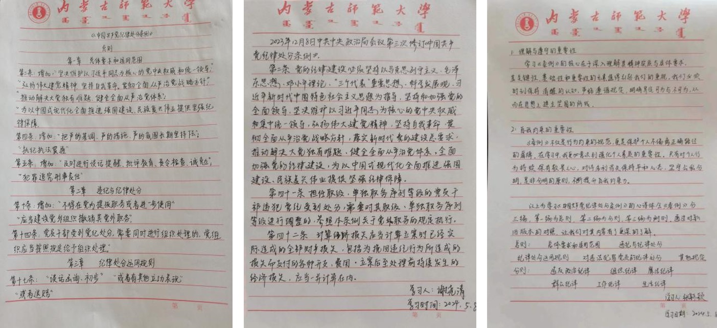 同学们纷纷表示,作为青年党员,必须时刻保持敬畏之心,坚定理想信念,牢记初心使命,保持对党忠诚,勇于担当、积极作为,严于律己、率先垂范,严守纪律底线,以实际行动践行党纪的要求。